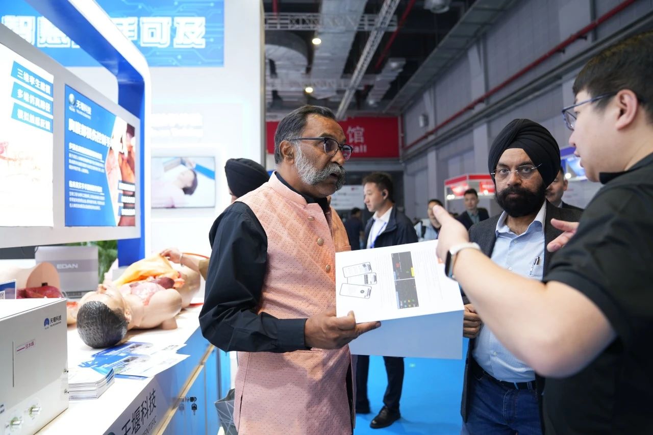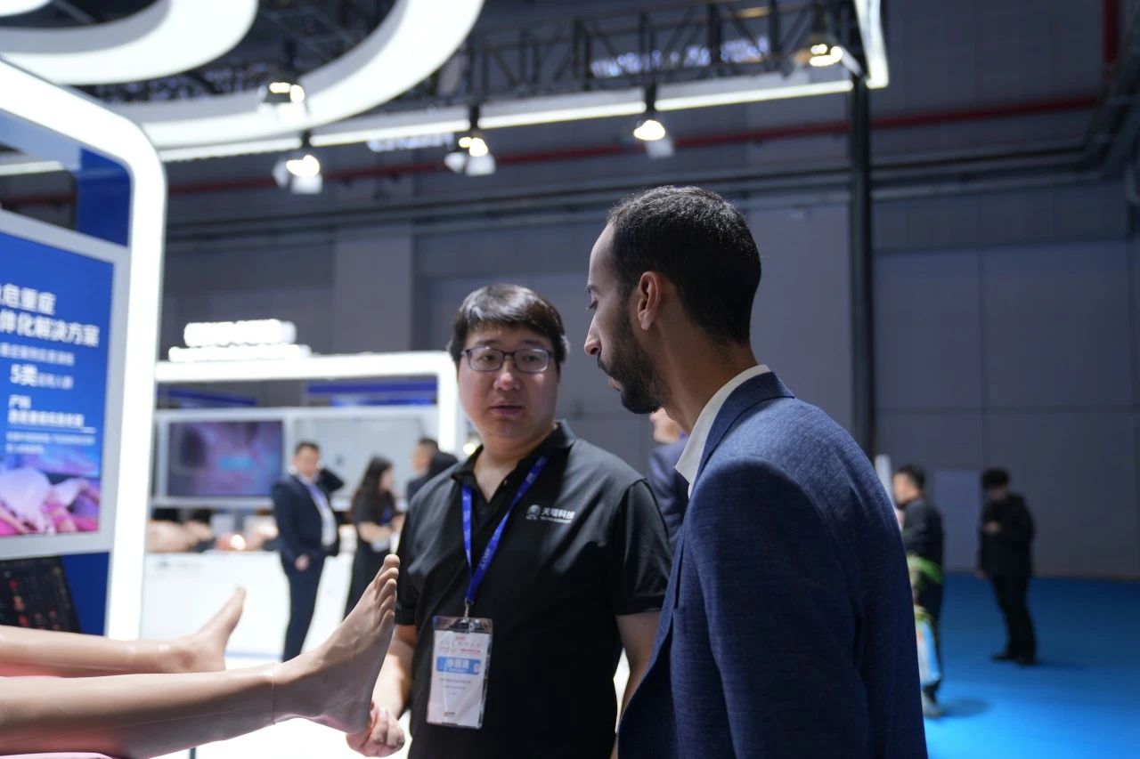 Focused on the Tellyes exhibition area, foreign guests showed great interest in the deep application of AI-based medical education platform and high-fidelity training system. After thoroughly understanding, they all gave consistent praise to the products.